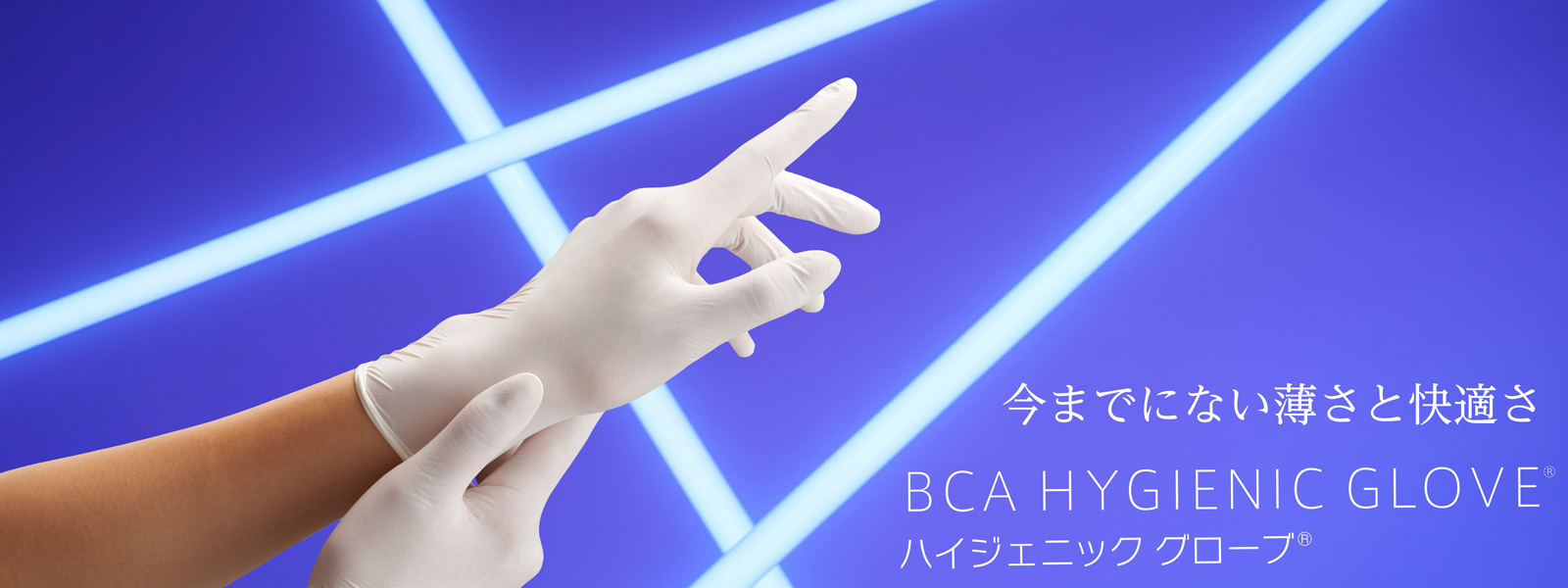 「BCA HYGIENIC GLOVE」は、最先端医療用グローブを基準に開発された理美容室専用のグローブです。 繊細で高度な技術を支えるために、長時間の着用でも疲れない快適な特殊設計になってます。 素手による施術以上の技術提供を目標に設計されてます。 指先の感覚は、髪の毛、髭一本一本まで正確に把握できます。 「BCA HYGIENIC GLOVE」を使用することにより、衛生的かつ今まで以上の施術を安心・安全に行う事が可能になります。