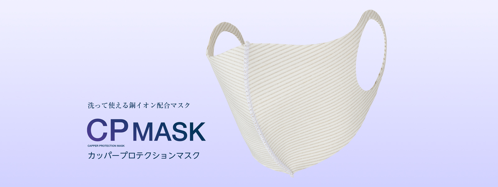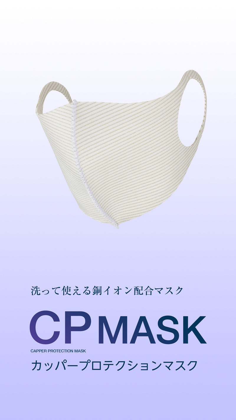 「CP MASK (カッパープロテクションマスク)」は、繰り返し洗って使用できる銅イオン配合の環境に配慮した殺菌効果が期待できる機能性マスクです。フィット感のある伸縮素材を採用。長時間の着用でも肌への負担が少ないやわらかく快適な着け心地です。